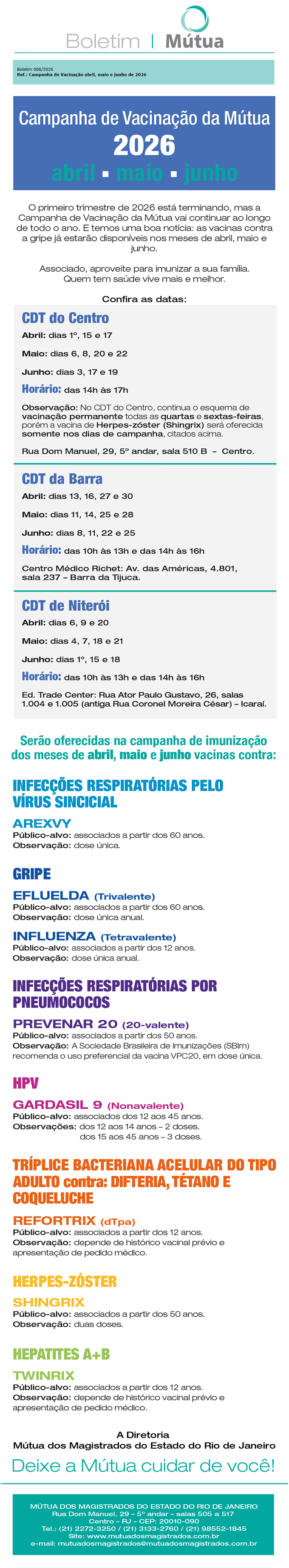 Campanha de vacinação abril, maio e junho de 2026 – Boletim 006/2026