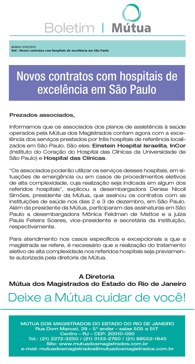 Novos contratos com hospitais de excelência em São Paulo – Boletim 024/2025
