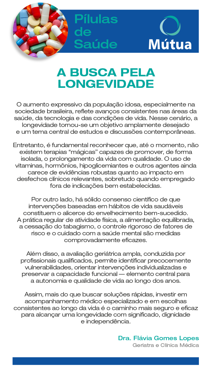 Pílulas de Saúde 14-04-2026 – A BUSCA PELA LONGEVIDADE