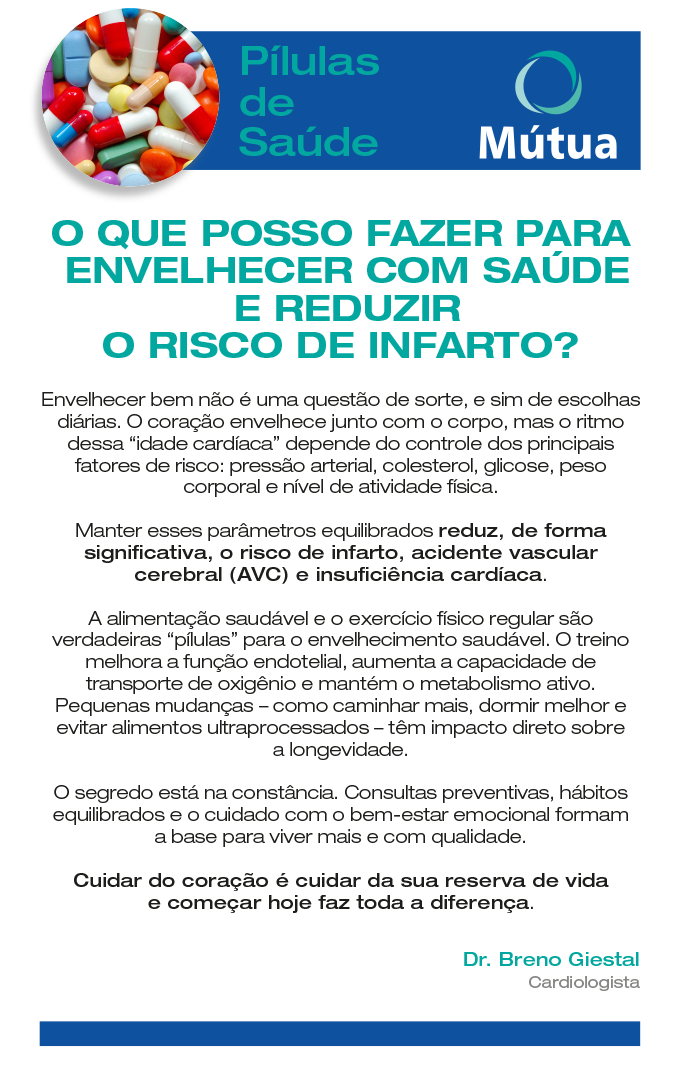 Pílulas de Saúde 18-11-2025 – O QUE POSSO FAZER PARA ENVELHECER COM SAÚDE E REDUZIR O RISCO DE INFARTO? Download Download