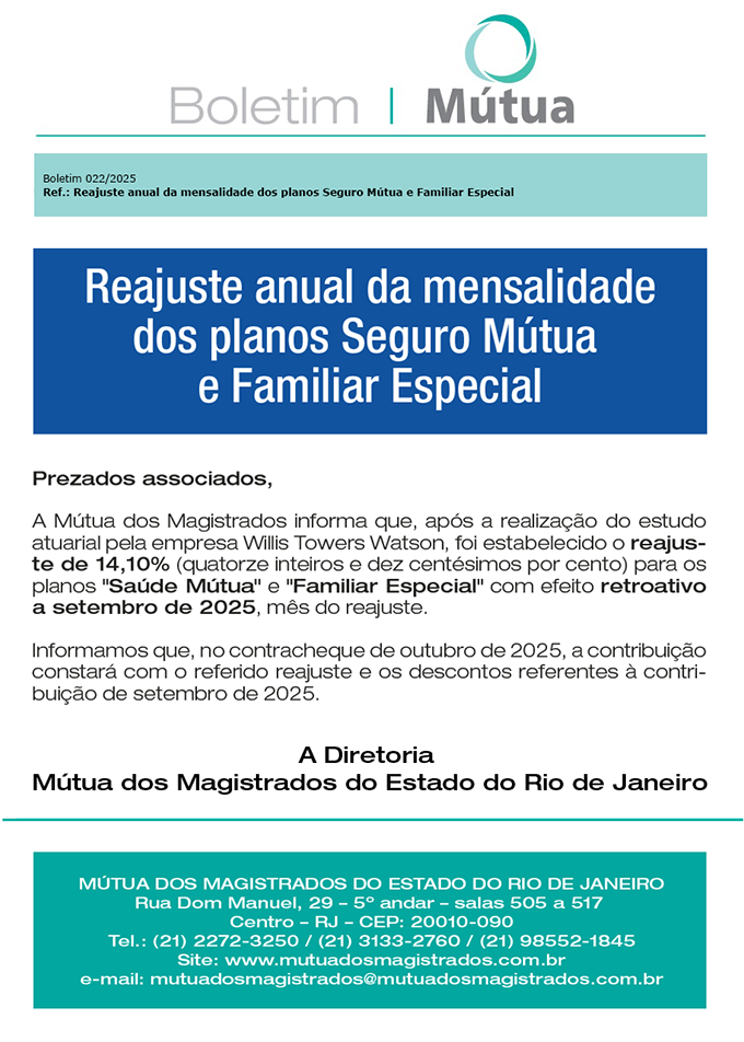 Reajuste anual da mensalidade dos planos Seguro Mútua e Familiar Especial – Boletim 022/2025 Download